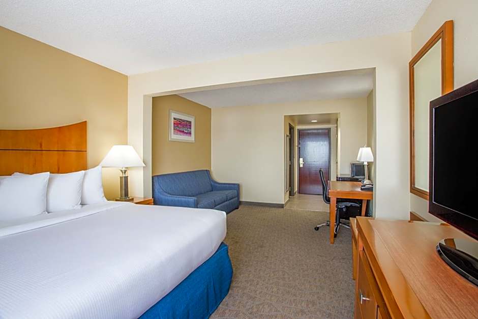 This room features a microwave, refrigerator, and a coffee machine with Wolfgang Puck coffee. A private bathroom with complimentary Neutrogena toiletries is included. A MP3 clock radio is provided. An iron with ironing board and hairdryer are offered.